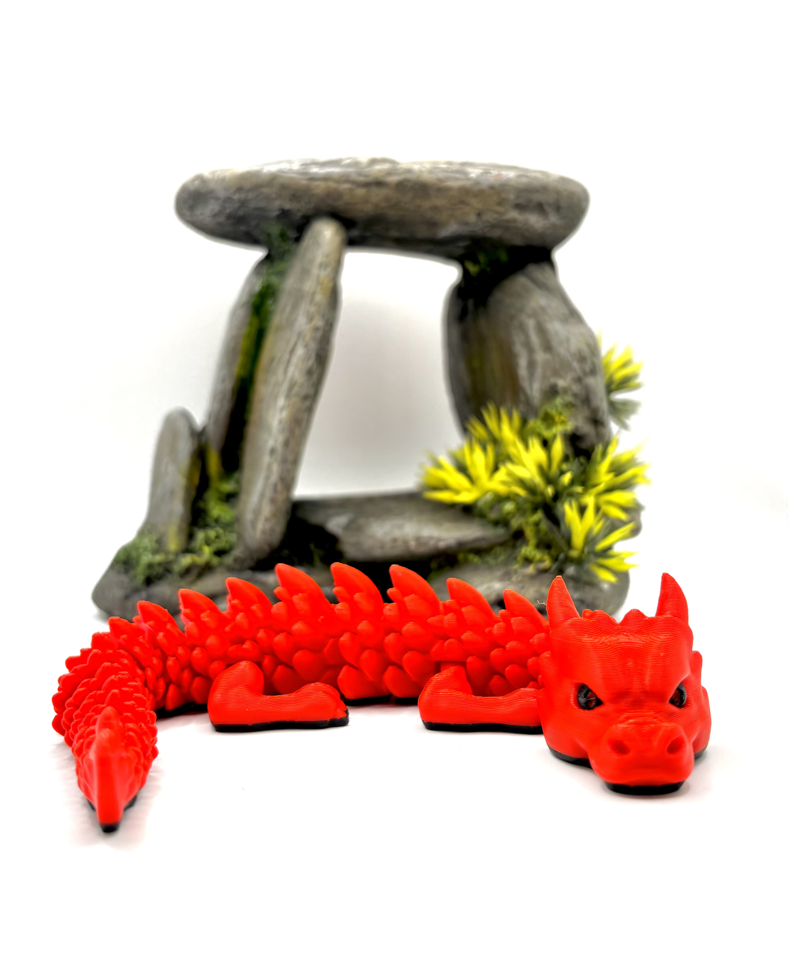 These articulated 3D-printed Baby Dragons are smaller in size with softer details and an extra dose of charm. Featuring a poseable body, expressive face, and a contrasting black underbelly, each baby dragon is designed to curl, stretch, or rest naturally. Their playful design and vibrant colors make them perfect for display or light fidgeting.
